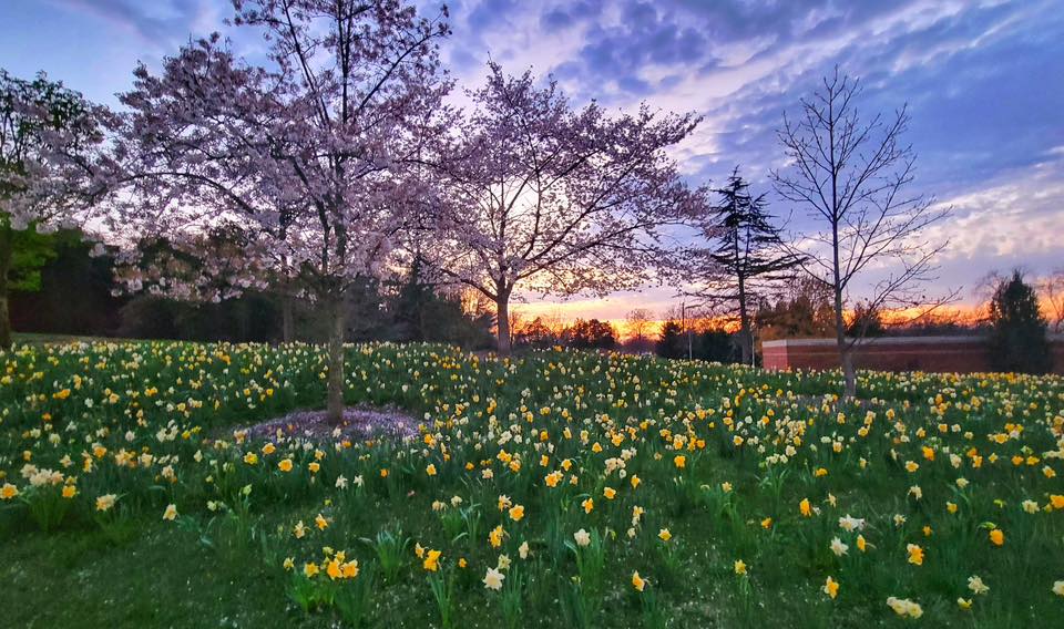 Just last week I was looking for something fun to do with friends for my birthday – on a Monday night – and you won’t be surprised to learn that we ended up at the Clarice, which was a big hit with my Greenbelt friends, most of whom had never been there before. We shared birthday sweets here in the Clarice Courtyard, with daffodils and cherry trees blooming in the distance. Then we headed for the Dekelboum Theater to hear the UMD Percussion Ensemble. It was the perfect venue for our little party – the prettiest spot on campus!
