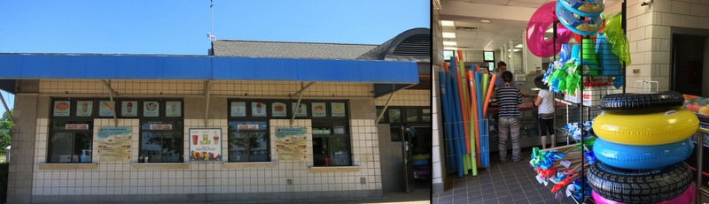 Near the beach there’s beachy stuff to rent, and food to buy.