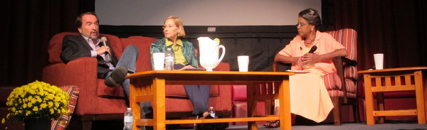 To get us all in the mood, Maryland Public TV sponsored an event about the documentary in the Community Center last weekend, in conjunction with the city and Museum. Following a preview of the series there was a Q&A with (from left, in photo) David Thompson, WETA producer and long-time collaborator of Burns; Cathy Knepper, author of Greenbelt, Maryland A Living Legacy of the New Deal and Dear Mrs. Roosevelt; and moderator Karen Gibbs of Maryland Public Television.