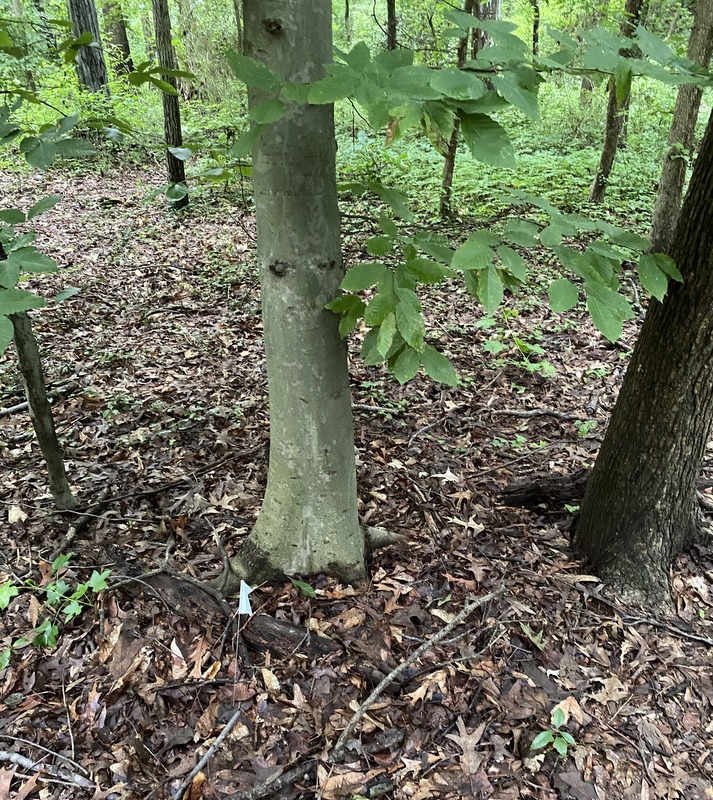 For this American beech, the text tells us to “Notice how very little is growing under it.” That’s because they produce a chemical into the soil which inhibits the growth of other plants (a biological phenomena called allelopathy )