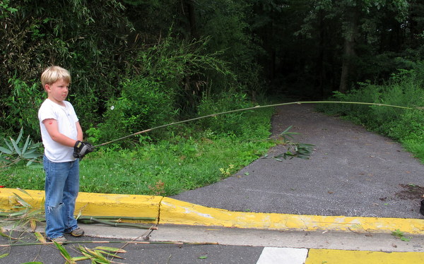Gavin Olsen saved one piece of bamboo with fishing pole potential. His brother Keller also helped that morning, along with Keith Bare, Teresa Smithson, Karen Peterson, Eric Leuliette, John Paul Schmit, and Richard Menis.